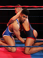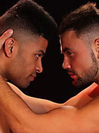 In the blue corner we have Jeffrey Lloyd, cute and sexy, tight and muscular. Lightly covered in hair in all the best places and packing one of the biggest pieces of meat we have to offer on UKHotJocks. In the red corner we have Jayden Middleton, strong and striking, cheeky and hunky. Big, heaving, perfectly rounded chest, bursting out of his bright blue wrestling singlet. The boys meet head to head, butts on show, a quietness, a stillness before the action. WRESTLE! Taking this very seriously they try to topple each other over, soon enough they are rolling about and clambering on top of one another for dominance. Jayden is bigger and stronger but Jeffrey is leaner, quicker, it’s an even match. Arses get slapped, legs twisted and arms pulled. In sheer exhaustion they end up on top of each other, panting, breathless and extremely horny. Jayden is on top but they both put upon a good and even fight… FLIPFUCK! The kissing starts, passionate and soft after such a hard grapple. Then Jayden its the first to get his meat out. Straddled over Jeffreys face he pulls out his 8.5” thick dick and slaps it around his face. Getting into a press-up position he lowers his hard meat into Jeffreys mouth, pushing it to the back of his throat, in and out, in and out. The massive bulge in Jeffreys singlet gets too much so he whips out his unbelievably big cock, wanking himself off while getting a face fucking. Spinning around they get into a 69 position, the only things separating them are the two huge weapons between them! Jeffrey gets up to let Jayden worship his monstercock, taking it as much down his throat as possible, looking up at him in an intense awe! Jeffrey gets back on the mats so Jayden can lower himself carefully onto his masterpiece of a dick. His face says it all, he’s loving it but man, his limits are being tested here! He bounces as best he can, taking all the length and girth of Jeffreys beast! FLIP TIME! It’s payback time and Jayden is eager to get at Jeffreys perfect butt! Jeffrey grabs his singlet, his cock twitches and he holds on for dear life! Sinking his dark dick into him Jayden rucks and grinds him sensually before leaning back and pounding his sweet hole. Both boys are making a lot of noise, you can tell they want to blow! Jayden fucks the cum out of Jeffrey, his huge cock spraying onto his hairy abdominals. Jayden pulls out and adds to the load, they kiss, pant, sweat, they’re spent!
