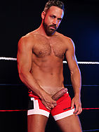 Logan is back for a new match! In the blue corner and a red and black wrestling singlet Logan is cocky and confident, he tugs at the straps showing off his big bulging chest, he’s asking for it! In the Red corner and also in red is the newcomer Jonas Jackson, beefy, burly and tanned. The guys are evenly matched is size weight and strength. Jonas is nervous but he needn’t be, he can take him! They get into it hard and heavy, Logan throws Jonas over but Jonas pulls on his arm making him wince. Thick thighs grapple around stiff necks and deltoids, twisting and turning, hairy butt cracks showing. It’s an even match, FLIP-FUCK! Logan pins Jonas down finally and gives him a big snog, he’s got no choice but doesn’t resist! The suit comes down so he can get his cock out and straight into Jonas’s willing mouth, press up position, lowering himself into him, face-fucking him on the floor. Logan aggressively flips Jonas onto his shoulders, exposed arse in the air ready for a good tonguing! Spitting, licking and slapping his beefy hairy butt, getting it primed and ready for what’s coming next. Stuffing his thick cock into a bent over Jonas, Logan really opens him up! Tight as fuck but that’s not going to stop him fucking him through the hole in his singlet! Flip time! Jonas lays back while Logan hops on a rides his cock, bouncing hard and taking it as hard as he can. Flip again! Logan gets Jonas on his back and fucks him missionary until he shoots his load over his beefy body. Logan pulls out and adds to the mess!