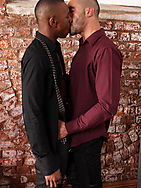 Standing up out of the office chair they start to strip each other, checking out the muscles beneath the work wear. They take it in turns to suck each other, one massive cock after the next. These guys are really hung, both 8"+! Issacs tanned, ripped body aggressively grazes Tysons smooth rich chocolate skin, with equally impressive physiques. The hot pair writhe and fuck hard against the raw brick wall, shagging so hard over the desk they nearly shake the office to pieces! Taking it down to the floor Tyson straddles Issac for some deep penetration, bulging thighs bouncing for all they're worth before he spurts on Issacs tensed abdominals. Tyson takes a seat to be physically showered by Issacs enormous load and looks suitably impressed. I think this new employee will make it past the trial stage!