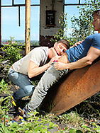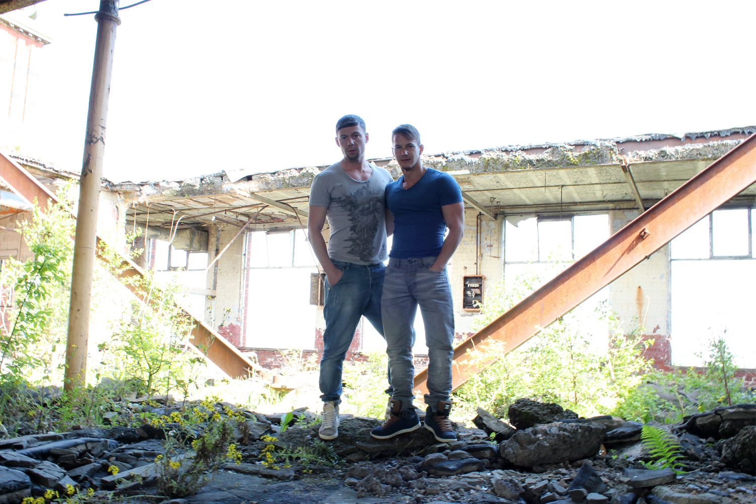 Theo is commuting home from work and checking his messages, as you do. The mysterious 'Mill' profile reaches out again, seeing what hot boys can be lured in. Darius Is sitting in a park enjoying the sunshine when he gets a message too. Both guys wander through the deserted and decaying building, right up to the top floor. Part of the roof has collapsed in, iron girders connect floor to celling and plant life has taken over the space where the outside elements can now reach, nature reclaiming the structure slowly. The see each other from afar and walk towards each other, smiling and looking embarrassed, almost like they know each other. They come together near this open sunlit space and embrace in a passionate snog. Deciding to take it into the centre of the foliage where it's warm, they strip each other. Hot mutual blow jobs in the sun using the old girders as a perfect level to lean on, both guys are really into each other! Darius bands over to receive Theo's thick hard cock, as a talented bottom Darius takes it like a pro and loves every second and every inch. Theo pounds into him hard, they'll shake the rest of the building down at this rate!