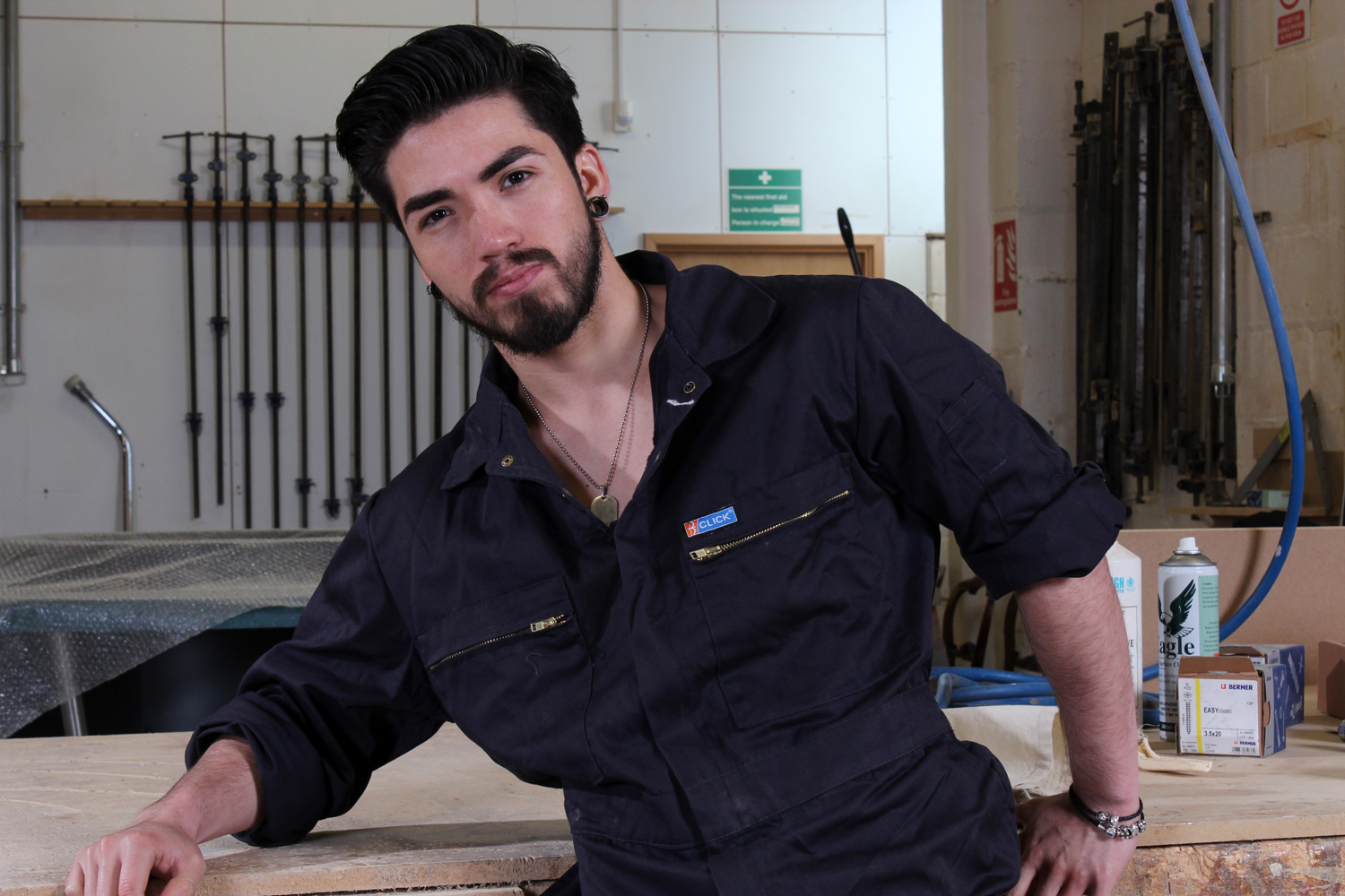 Alexis is sanding some bits and pieces of a project down, to meet his own exacting standards of craftsmanship. Boss man Nick North is surprised to see him working alone again.