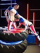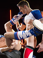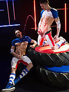 Sam and Jace Square up to each other on top of the play tyres. They size each other up, explore their muscular bodies and grab hold of the gear. Looking like pristine jock boys they can't wait to messy up their kit and get piss dirty with each other! They release their hard dicks and have a meaty sword fight before Sam decides he wants it in his mouth. Licking around his low hanging balls and enjoying the lot. Jace reciprocates, sucking sam off like he wants what's inside... And I don't just mean cum! Sam opens the flood gates and pisses all over Jace and his gear, his tight body glistening with dewy yellow beads, the gear getting soaked through. Tables turn and Jace gets up high over Sam and unleashes a torrent of piss over him. Wet and wanking Sam is fucking loving it! Flipping him onto his back Jace soaks Sams arse, peels off the wet shorts and soaks his hole before he fucks him. Slapping the pooled piss on Sams abs making it splash everywhere while they fuck. Sam has more to give, while taking a hard shagging he continues to empty the tank and pees all over them both. What a wet, wild ride!!