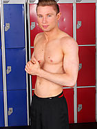 Sexy Aussie jock boy Justin teases us in a red & white jock, socks and football boots before flopping out his massive meat for us in the locker room! Blonde swept back hair, chiselled jaw, steely eyes and with a glance through cameras that could melt the loins any man or woman. flexing and tensing his hot, perfectly toned body throughout, this is one fit-as-fuck Locker Jock!