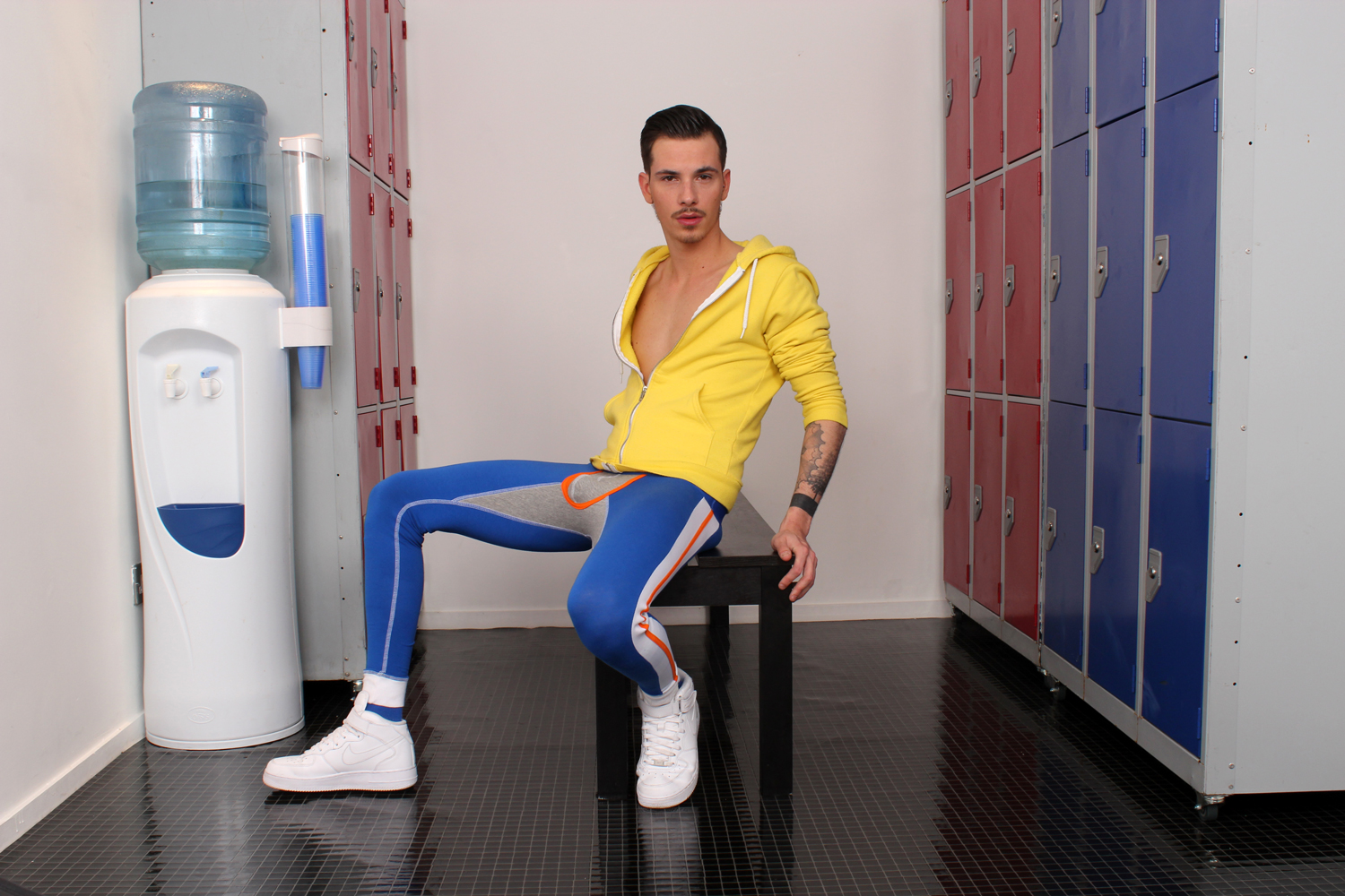 Let it not be said that UKHotJocks doesn’t also bring you the best in European talent too. Super sexy French boy Nathan Hope in his first taste of HotJocks Locker room fun! Smouldering good looks and a sporty, hot and casual style Nathan is obviously very comfortable stripping off for the cameras, sharing a cheeky smile as he does so. Slipping off his bright blue sporty leggings to reveal yet more interesting and cool tattoos. His cock already rock solid and begging to be played with. Nathan gives himself a good hard wank, tweaking his pierced nipple at the same time, something he clearly likes! He knows how to keep himself pleasured, his dick doesn’t soften throughout the whole session. Even though he’s all top, he doesn’t mind showing off his pert little butt and hairy hole, teasingly unobtainable!