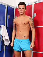 Seth is an all-American boy who just loves to get down and dirty. Charming, charismatic and full of spunk... pun definitely intended! In his sweet white vest and baby blue shorts, you get a hint of his naughtiness in the form of his beautifully artistic tattoos. He begins to strip off and get horny in the locker room. Seth may be young but what he lacks in age he definitely makes up with pure sex appeal. He strokes his smooth body, plays with his nipples and wakes up his sizable dick! He strokes, moans and clearly has a lot of fun with himself before spunking a hot load!!