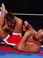 Logan is back for a new match! In the blue corner and a red and black wrestling singlet Logan is cocky and confident, he tugs at the straps showing off his big bulging chest, he’s asking for it! In the Red corner and also in red is the newcomer Jonas Jackson, beefy, burly and tanned. The guys are evenly matched is size weight and strength. Jonas is nervous but he needn’t be, he can take him! They get into it hard and heavy, Logan throws Jonas over but Jonas pulls on his arm making him wince. Thick thighs grapple around stiff necks and deltoids, twisting and turning, hairy butt cracks showing. It’s an even match, FLIP-FUCK! Logan pins Jonas down finally and gives him a big snog, he’s got no choice but doesn’t resist! The suit comes down so he can get his cock out and straight into Jonas’s willing mouth, press up position, lowering himself into him, face-fucking him on the floor. Logan aggressively flips Jonas onto his shoulders, exposed arse in the air ready for a good tonguing! Spitting, licking and slapping his beefy hairy butt, getting it primed and ready for what’s coming next. Stuffing his thick cock into a bent over Jonas, Logan really opens him up! Tight as fuck but that’s not going to stop him fucking him through the hole in his singlet! Flip time! Jonas lays back while Logan hops on a rides his cock, bouncing hard and taking it as hard as he can. Flip again! Logan gets Jonas on his back and fucks him missionary until he shoots his load over his beefy body. Logan pulls out and adds to the mess!