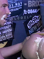 UKHotJocks producers Sam Barclay & JP Dubois treat the guests to an X-rated, light hearted and messy whipped cream show. Wearing nothing but jockstraps and hi-tops they fill their baskets, arse cracks, abs and mouths with the white fluffy stuff. Spitting it all over each other and making a right royal mess of the VIP stage!