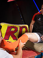 When two footie kit clad lads get together after a hard sweaty game, they feel dirty and wana get dirtier. Tired and hot feet need a rub down... maybe a little more The smell of fresh sweat, used trainers and stinky socks fills the air. Reid is first up and gets down on his knees to rub and worship Ford's aching plates. Licking the sock fabric, chewing on his toes and inhaling his sexy musty scent, he's enthralled! Ford is loving this and can't wait for his turn. Two vers lads swap feet for cocks and suck each other off, bulging muscle straining their football kits and hard dicks bursting out of silky shorts. They can't get enough of each other, dicks, socks, sloppy kisses and hairy arses. Ford goes in face first to Reid's sweaty crack, softening him up for a good energetic fuck and his first bottom experience for UKHotJocks! Ford doesn't take to him lightly and rails his arse into the armchair all the while making eye contact and sucking on his crisp white footie socks. Flip over, Reid on Ford. Showing off his freshly fucked arse he bends over to get his tongue in Ford's ass, returning the favour. You gotta lick it before you stick it! Pay back time and Reid absolutely pummels Fords perfectly toned ass. Socks, spunk and tow very satisfied lads. Good game!