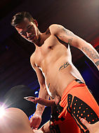 Nathan Hope takes a long look at the line up, he's extremely choosy and not afraid to test each boy quite hard before making his decision, try before you buy, right? This is a sex slave market and he wants something good for the price of his time and dominant ego. He may be the leanest of our doms, even by comparison of the subs he is not the biggest guy but what he doesn't have in physical size he more than makes up for with a voracious sexual presence and a hard, aggressive and heavily physical attitude. He is all dominant top! For all the line up of subs know, he could be the biggest and hardest guy they've faced. He takes an obvious liking to one boy, cute bum, perfect pale skin and a willing sub. Nathan is an ass man and loves to make some pink cheeks red! He pushes him down, smacks him hard and lightly plays with his hole, for now. He want's to face fuck him, which works better with lubrication right? Grabbing the boys head, tilting it back and spitting in his mouth, some hard thrusts with his dick, more spit, more thrusting and more spit. Nathan is fucking dirty and the boy is loving it! Pulled over to the bench he's told to show off his hole. it's quite a prize and Nathan is happy with his choice. Adding fingers and saliva in the picture makes it even hotter, plus the groans and sighs from the other end of the boy. Getting up behind him he lubes up and plunges in. Long slow strokes building up to a power fuck. Slapping those butt cheeks to keep them glowing all session. He fucks hard, fast and with serious determination, the boy is in total bottom heaven! A reward is due so Nathan decides to let his sub see who's in control as well as feel it. The hood comes off but relentless and intense fuck continues!
