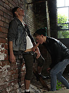 More anonymous messages are sent out to the hottest boys in the vicinity. Seb Evans is first to get a message, he's at a train station and is killing some time people watching.. or cruising. He makes his way to the unusual location, a bit scared, a lot excited. He doesn't know who is waiting for him inside. The rain is pouring down and he cautiously enters the dilapidated old mill, weaving through the rusty columns barely holding it up. Kayden Gray is leaning up against a wall, stroking is monster cock and waiting. There is a long walk from one end of the building to the other, they see each other, this is just adding to the anticipation.They size each other up before Seb gets down on his knees to suck on Kaydens own thick veiny column. Seb is an expert cock sucker and takes a hard face fucking with gusto, spit shining and choking on every inch of Kaydens meat for what seems like an eternity. Kayden returns the favour by sucking Seb and fingering his fuck hole, ready for invasion. He slides in, Seb groaning and wailing with pleasure. As a bottom boy, he can't get enough of his super-sized prick. Kayden takes him all over the back wall, a handy plinth keeping Seb at just the right height for fucking. Ending in a torrent of thick white cum from both boys.