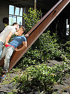 Theo is commuting home from work and checking his messages, as you do. The mysterious 'Mill' profile reaches out again, seeing what hot boys can be lured in. Darius Is sitting in a park enjoying the sunshine when he gets a message too. Both guys wander through the deserted and decaying building, right up to the top floor. Part of the roof has collapsed in, iron girders connect floor to celling and plant life has taken over the space where the outside elements can now reach, nature reclaiming the structure slowly. The see each other from afar and walk towards each other, smiling and looking embarrassed, almost like they know each other. They come together near this open sunlit space and embrace in a passionate snog. Deciding to take it into the centre of the foliage where it's warm, they strip each other. Hot mutual blow jobs in the sun using the old girders as a perfect level to lean on, both guys are really into each other! Darius bands over to receive Theo's thick hard cock, as a talented bottom Darius takes it like a pro and loves every second and every inch. Theo pounds into him hard, they'll shake the rest of the building down at this rate!