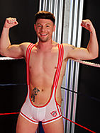Yellow vs Red and Brute vs Theo. Both guys are in matching style wrestling singlet’s but in opposing colours, Theo Reid in a white and red, Brute Club in Black and Yellow. Both guys look sexy as fuck, the singlet’s are more like shorts with straps attached, they don’t leave much to the imagination! The guys are psyching each other out right from the start, Theo keeping his body warm by bouncing up and down, Brute gives him that steely stare that he does so well, you know he means business. Squaring up, sizing up before bursting out into a double headlock and taking each other to the floor. This feels like a real power battle, both guys are pretty evenly matched in height and size and control of the floor flips both ways a lot. They really go for it, throws, grappling and pinning each other down, which they’re definitely both enjoying. Theo is on top of Brute and in a moment of tense hesitation they almost kiss, Brute flips him over into the same position and takes a final charge and snogs his face off! Crotches rub and grind together, Brute is too hard to keep his giant dick in his suit anymore, so gets it out and straight into Theo’s mouth. He takes his time and gets Brute to the point of bursting with excitement, licking his balls and up each side of his long and chunky cock before taking as much of hit as he can down his throat. Brute is laid down at first enjoying his cock being worshiped, the he gets up, his fully super-hard dick standing proud, glistening and still being sucked on. In another wrestling move, keeping it all aggressive Brute flips Theo onto his back and tears off his singlet, pushes his legs back and delves into his ass, tongie and fingers, slapping his butt cheeks and warming up his hole for the monster cock that’s about to come. Preparing to fuck, brute smacks his dick on his hole, getting the blood pumping even further, he slides in, Theo gasping and grimacing before accepting his cock and fucking loving it! Using Theo’s leg as a lever he fucks into him, hard. Getting onto his hands and knees Theo prepares to take his cock doggy style, pretty intense when 9” comes at you! Pounding the fuck out of him and making him moan louder than ever, both guys glimmering in sweat. Another wrestle flip and Theo is back on top, squatting on his cock, taking him balls deep and riding him like he’s trying to get the cum out of him. Rocking back and forth Theo jerks his cock until he explodes all over Brute. Pushing him off, cum covered Brute wanks off over Theo’s open mouth, spunking a huge load over his face and in his gob, taking the time to go down and share a cummy kiss with him. Beautiful finish guys!