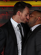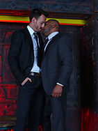 Having obviously done this before Adam knows the procedure, they head down a back alley to a dark, underground space to make the final end of the trade. Coats and suit jackets hit the floor in a passionate and hard embrace. Ties are yanked and lips lock, they both get a good feel of the goods on offer with mutual crotch gropes. More clothes come off revealing the ripped bodies beneath the sharp exterior. Josh gets on his knees to service Adam taking his fat cock in his mouth and slurping him down, getting him harder for the fine arse he’s about to offer him. This is a hard and riotous fuck, at least 6 positions with bottom boy Josh being ragged all over the space and loving every second of it!