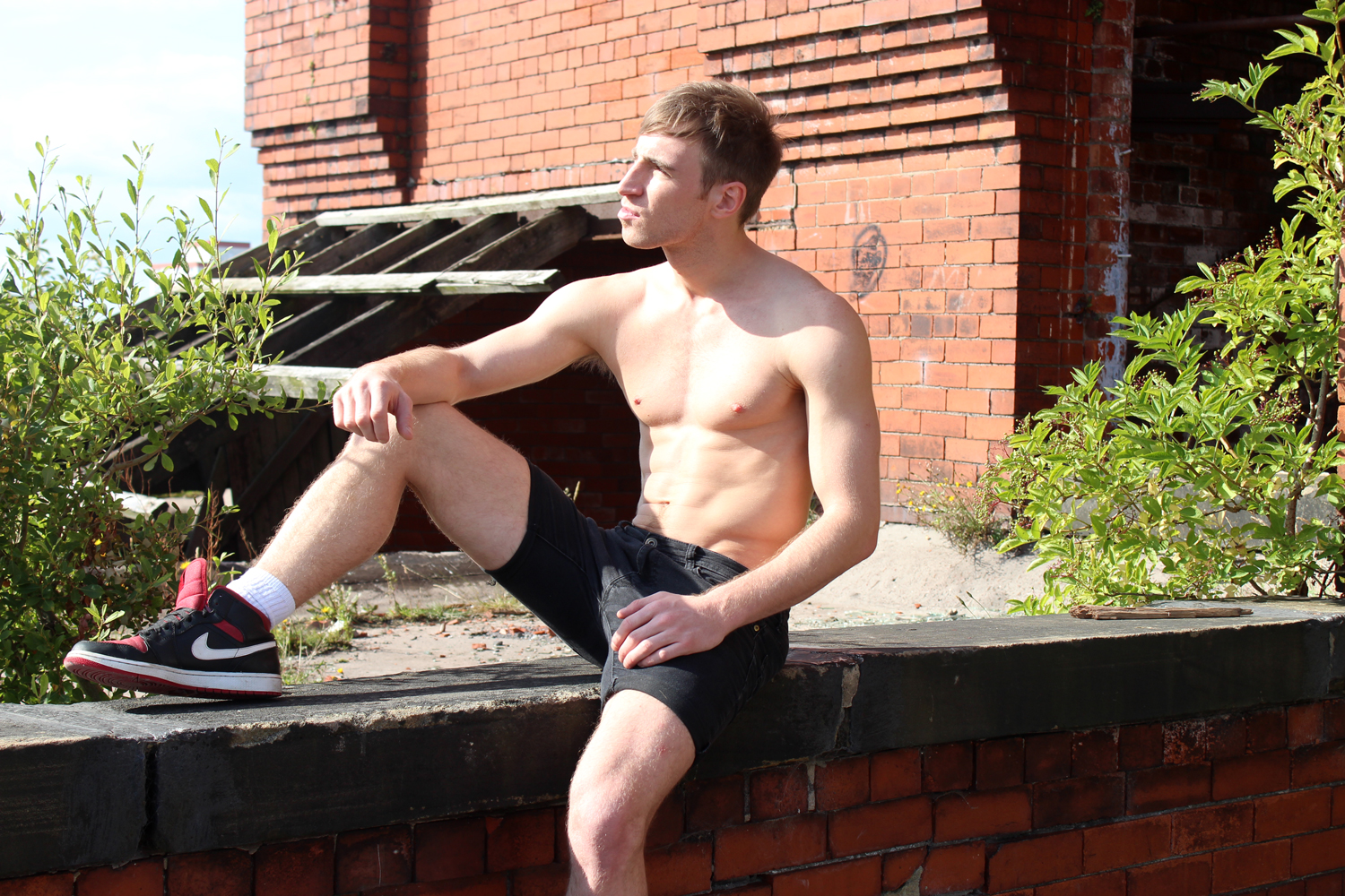 Robbie approaches the decaying remains of a by-gone industrial era with a cautious but curious intention. Dressed in crisp white and tight jeans, he's a stark contract against a dirty and dusty backdrop. Making his way through the building he walks ok rooftops and explores the outer areas of this massive structure.