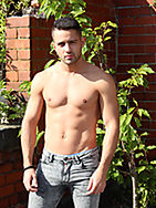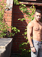 Kayden sits alone, the sunlight warming his face, the cold stone keeping his butt cool. Robbie spots him from a distance and approcahes with a slow caution. There is however an instant attraction, the cautious walk turns into a tense sexual game. Nose to nose, the temptation to kiss gets too much and they explode in sensual passion. Stripping off their outer layers, tight, pumped muscles are exposed to the warm light of the sun and each other. Nipples are hard as nails and dicks bursting out of briefs. Kayden pushes Robbie to his knees and unveils his 9.5" monster to the surprise and delight of Robbie! He slicks his shaft up, goes deep like a pro and sucks him hard. Lifting Robbie up onto the wall behind him, Kayden gobbles on his equally big dick, deep throating and spitting all over it. It's a battle of big cocks but in this case, Kayden wins and takes his trophy to an open windowsill to fuck him. Robbies facial expression says it all, he is BIG but sensual. Fucking him in all sorts of positions, the light gracefully frames them. Things get hard and frantic, Robbie takes a fucking hard pounding and loves every second! Messy ending all over the hot bottom boy completes a fucking hot and beautiful encounter.